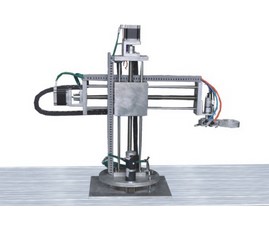 4. 搬運機器人:檢測單元檢測到產(chǎn)品分類信息時,通過通信網(wǎng)絡將檢測結果傳送到該站,該站通過坐標式氣動機器人將從生產(chǎn)線上送來的成品送往全自動堆垛機。主要由四自由度氣動機械手組成。電氣控制部分由PLC完成