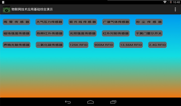 3、基礎學習單元:基礎學習單元提供一套Zigbee無線傳感網(wǎng)系統(tǒng)、RFID射頻識別系統(tǒng)、感知執(zhí)行器控制系統(tǒng),搭載著二氧化碳、光照強度、聲響/光敏監(jiān)測、大氣壓力、粉塵、紫外線、紅外對射、雨雪、磁場、熱釋紅外、廣譜氣體、干簧門磁/霍爾開關(guān)等傳感器以及配套智能網(wǎng)關(guān)傳感器數(shù)據(jù)采集系統(tǒng),學生可以對無線傳感網(wǎng)技術(shù)進行學習并自行開發(fā)構(gòu)建綜合的無線傳感網(wǎng)系統(tǒng),例如智能家居系統(tǒng)、智能農(nóng)業(yè)系統(tǒng)、圖書管理系統(tǒng)、ETC不停車收費系統(tǒng)、地鐵閘機收費系統(tǒng)等。