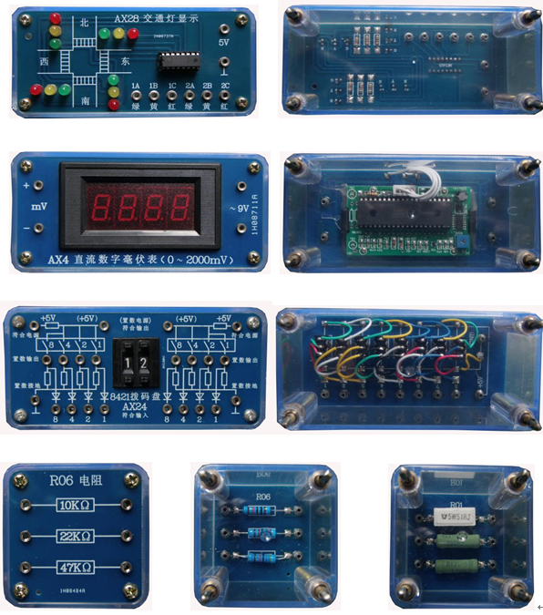 實(shí)訓(xùn)模塊由透明元件盒及PCB板構(gòu)成,元件盒是組合式透明元件盒,元件盒單元組采用多元件、典型實(shí)訓(xùn)單元電路、典型傳感器、通用集成電路插座等制成,可根據(jù)實(shí)訓(xùn)需要方便地組合成不同的電工電子實(shí)訓(xùn)線路;使實(shí)訓(xùn)具有開放性和創(chuàng)新性,元件盒體由透明有機(jī)工程塑料注塑而成,具有示教功能,使使用者能夠觀察到元件形狀和接線方式,有利于教師講解和學(xué)生認(rèn)識(shí);面板采用PCB制作而成,表面清爽、符號(hào)線路清晰、表面耐磨損、元件更換容易;面板上標(biāo)志的元件電路符號(hào)采用最新國(guó)家標(biāo)準(zhǔn),具有整體結(jié)構(gòu)緊湊、外形美觀大方、安裝簡(jiǎn)單、使用保管方便等特點(diǎn)。導(dǎo)線插孔采用防轉(zhuǎn)座,導(dǎo)線裝有彈性插頭可在模塊上面插接,以保證可靠連接進(jìn)行各種實(shí)訓(xùn);實(shí)訓(xùn)時(shí)可根據(jù)實(shí)訓(xùn)內(nèi)容和技能訓(xùn)練的需要,方便的任意組合實(shí)訓(xùn)線路,以完成不同的實(shí)訓(xùn)項(xiàng)目等。