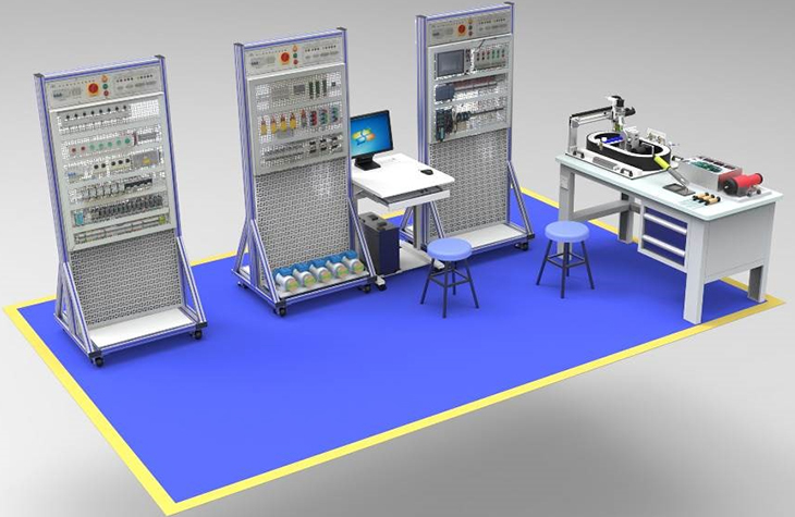 電工綜合實訓(xùn)考核設(shè)備由PLC電氣控制應(yīng)用平臺、電力拖動安裝平臺、立式塑膠機控制電路故障診斷實訓(xùn)平臺、電腦桌、裝配桌、實訓(xùn)儀表工具等組成。