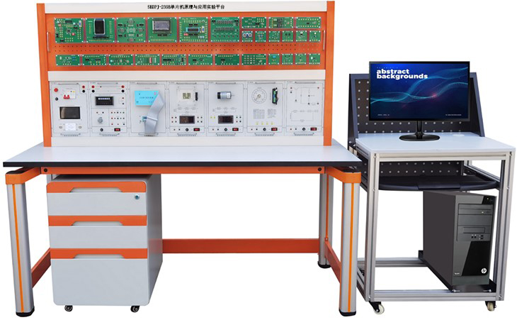 單片機原理與應用實驗平臺由實訓桌、控制屏、實驗模塊、實驗對象、編程軟件和實驗連接線等組成。實驗模塊應包含直流穩(wěn)壓電源、單片機最小系統(tǒng)、存儲器、A/D