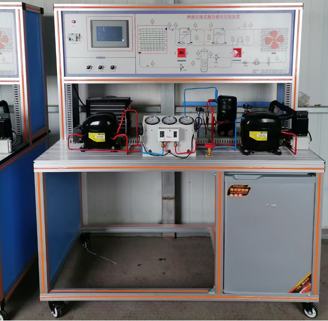 雙級壓縮機(jī)式制冷系統(tǒng)實(shí)驗(yàn)裝置,雙級壓縮制冷實(shí)訓(xùn)裝置:隨著制冷技術(shù)的發(fā)展,對于用冷量大的系統(tǒng)采用單機(jī)雙級壓縮制冷裝置己不是最佳方案,而采用單機(jī)配打雙級壓縮制冷裝置得到越來越廣泛的應(yīng)用。主要介紹雙級壓縮制冷過程中間壓力對制冷系數(shù)的影響,從而為設(shè)計(jì)單機(jī)配打雙級壓縮制冷裝置時(shí),合理的選擇中間壓力提供依據(jù)。