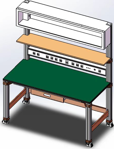 1、實(shí)訓(xùn)桌:臺面采用不小于25mm厚浸漬膠膜紙飾面刨花板;型材立柱:截面尺寸不小于 70*70mm,四角圓弧不小于 R15mm 工業(yè)級鋁型材,表面陽極氧化成本色;鋁壓鑄連接件:鋁壓鑄連接件,外形尺寸不小于160x166x70mm,壁厚不小于3mm,表面拋丸后噴塑處理;圍框框架:截面尺寸不小于 20*40mm 冷軋電鍍鋅方鋼管拼裝焊接制作,表面噴塑處理;固定于鋁壓鑄連接件上,用以連接臺架立柱;頂部拉桿:截面尺寸不小于 40*40mm 冷軋電鍍鋅方鋼管,表面噴塑處理;固定于頂部 2只鋁壓鑄連接件上,用以支撐頂部隔板;底部拉桿:截面尺寸不小于 20*80mm 冷軋電鍍鋅方鋼管拼裝焊接制作,表面噴塑處理;