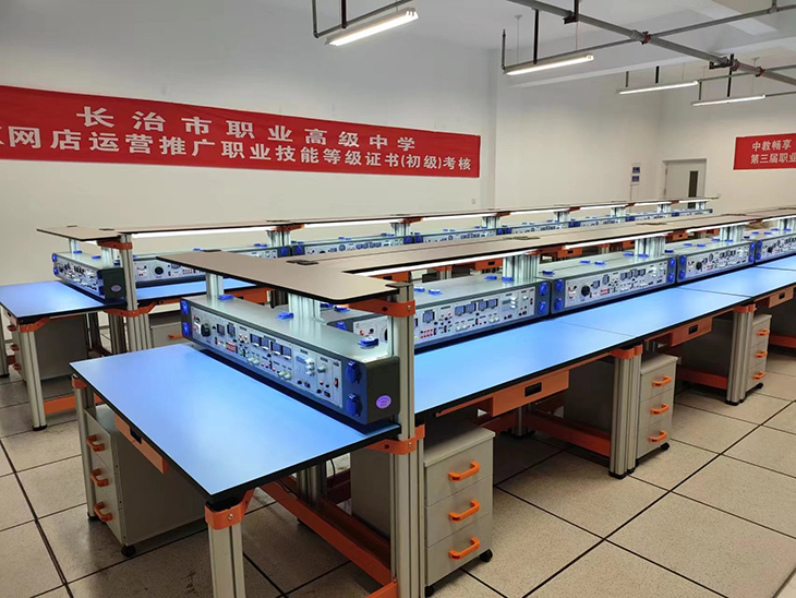 電子裝配與工藝實(shí)訓(xùn)臺(tái)由儀器架、主機(jī)箱、實(shí)驗(yàn)桌、移動(dòng)矮柜、學(xué)生凳等組成。實(shí)驗(yàn)裝置支架與實(shí)驗(yàn)桌可組合、可拆裝。支架與桌腳一體,鋁合金結(jié)構(gòu)。