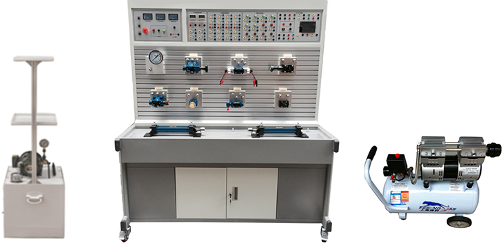利用此套實訓(xùn)設(shè)備既可分別獨立地進行氣動控制、液壓控制相應(yīng)的基本回路及其應(yīng)用實訓(xùn),也可綜合地進行相互配合的實訓(xùn):如實現(xiàn)氣-電控制,氣-液控制,電-液控制,以及氣-電-液綜合控制等。