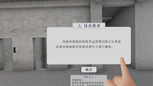 系統(tǒng)可以根據(jù)頭顯的定位和角度變換來(lái)進(jìn)行全場(chǎng)景的展示,在場(chǎng)景中可以體驗(yàn)真實(shí)的施工環(huán)境和相對(duì)應(yīng)的施工過(guò)程,增加沉浸感和體驗(yàn)度。
