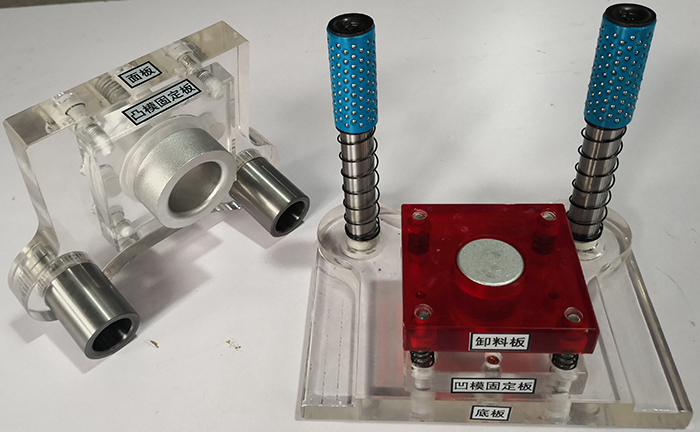 在模具同一位置上能完成幾個不同的工序的模具.落料凹模在下模處,凸凹模在上模,卸料、凹模、凸凹模均需設有浮動頂出結構,并能一次完成落料、沖孔工藝,下模設有擋料銷,各零件需精密定位,并有定位銷確保拆裝方便。 |