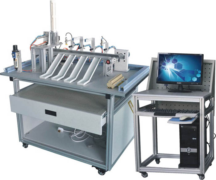 材料分揀實訓裝置是針對機電一體化教學的要求而研發(fā)的,它涵蓋了PLC、氣動控制、電機傳動、電磁鐵控制、位置控制、傳感器檢測等教學內容,是實際工業(yè)現(xiàn)場生產(chǎn)設備的微縮裝置;诙喾N傳感器的檢測及旋轉編碼器的精確定位,實現(xiàn)對不同材質、不同顏色物體的分揀。裝置采用全開放式布局且具有設故排故單元,可充分鍛煉操作者系統(tǒng)接線、機械調試安裝、軟件編程、獨立構建控制系統(tǒng)、反饋整定、故障檢測及檢修的能力。適合于自動化、電氣自動化、電氣工程等專業(yè)的《運動控制》、《氣壓系統(tǒng)》、《機電一體化技術》、《檢測與轉換技術》、《可編程控制技術》等課程開設實訓課。