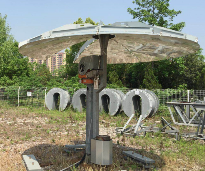 集熱器樣式,類似美國Infinia英菲尼爾公司斯特林聚光碟樣式,此樣式特點是反光拋物面具有扇形開口,與立柱交叉。