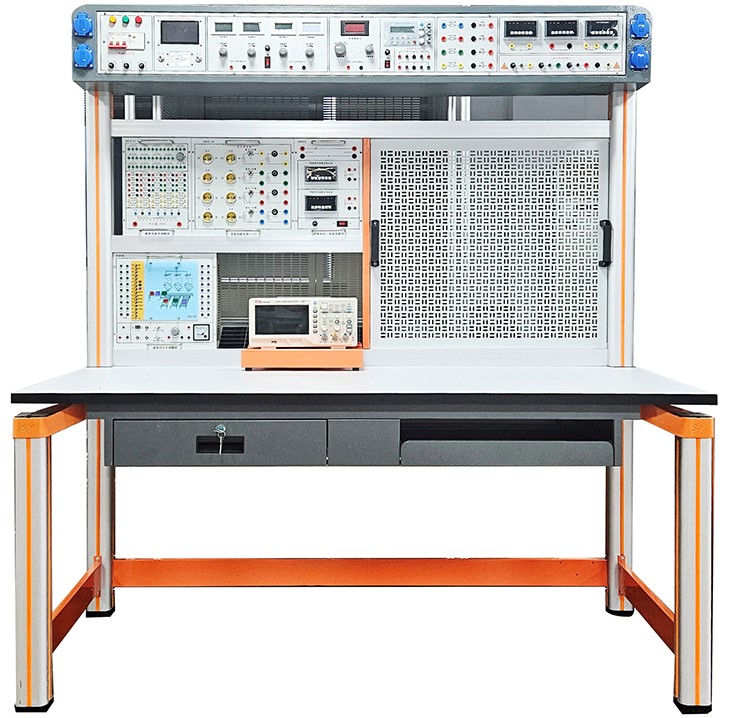 五、實訓(xùn)操作桌:鐵質(zhì)雙層亞光密紋噴塑,桌面為防火、防水、耐磨高密度板,設(shè)有抽屜和元件儲存柜,結(jié)構(gòu)堅固、造型美觀大方。