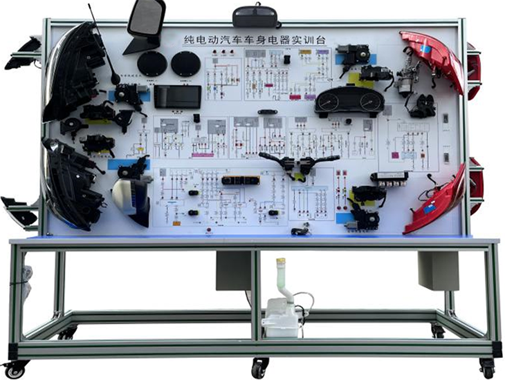 新能源汽車電氣系統(tǒng)測試設(shè)備采用(高速)純電動(dòng)汽車車身電器系統(tǒng)實(shí)物為基礎(chǔ),充分展示純電動(dòng)汽車儀表系統(tǒng)、燈光系統(tǒng)、雨刮系統(tǒng)、喇叭系統(tǒng)、低壓電源電器系統(tǒng)、電動(dòng)車窗系統(tǒng)、電動(dòng)門鎖、音響系統(tǒng)等低壓電器系統(tǒng)的組成結(jié)構(gòu)和工作過程。適合于各類院校對純電動(dòng)車車身電器系統(tǒng)理論和維修實(shí)訓(xùn)的拆裝與維護(hù)、結(jié)構(gòu)與原理認(rèn)知、系統(tǒng)操作、功能動(dòng)態(tài)演示、故障檢測與診斷教學(xué)需要。