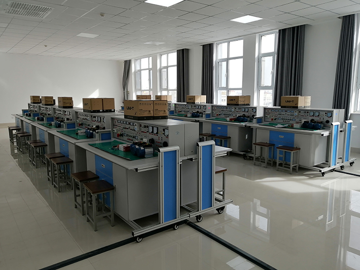 電工基礎實訓臺,電工基本實訓設備,電工電子技能實訓臺,電工實驗臺具有較完善的安全保護措施,較齊全的功能。實驗桌中央配有通用電路板,電路板注塑而成,表面布有九孔成一組相互聯(lián)通的插孔,元件盒在其上任意拼插成實驗電路,元件盒盒體透明,直觀性好,盒蓋印有永不褪色元件符號,線條清晰美觀。盒體與盒蓋采用較科學的壓卡式結構,維修拆裝方便。元器件放置在實驗桌下邊左右柜內(nèi),大大提高了管理水平,規(guī)劃化程度,大大減輕了教師實驗準備工作。