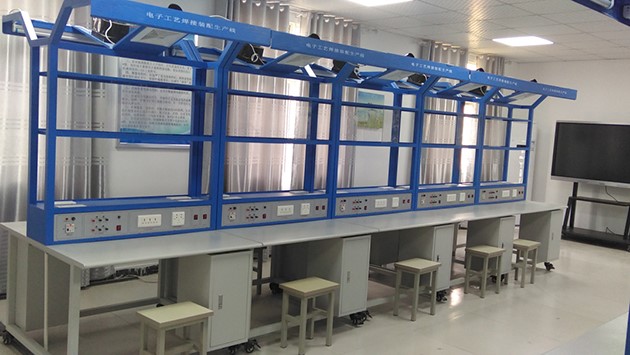 電子設(shè)計及操作實訓(xùn)臺上提供日光燈(用于照明)2個,透明的PVC板8個,可夾放原理圖等資料,另外還配備三芯雙聯(lián)暗插座4個、兩芯暗插座4個、工具柜4個,工作臺面設(shè)有綠色防靜電桌墊,整個裝配線安全可靠。