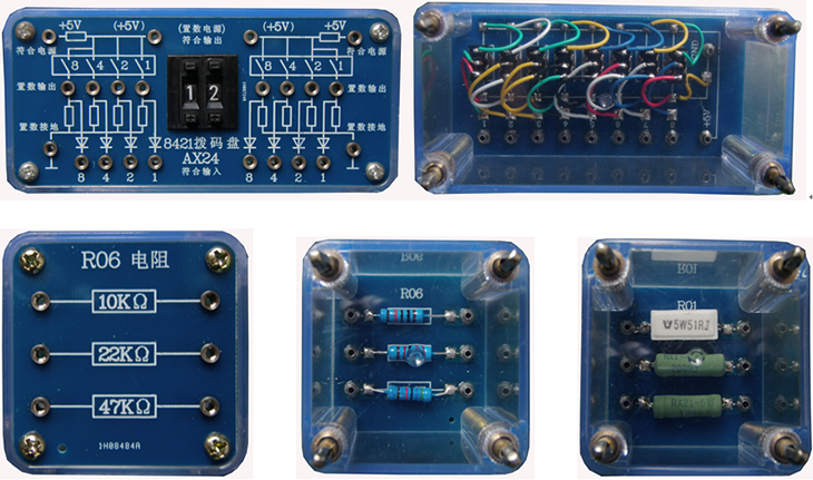 (透明電子元件模塊示例圖,共9塊板,140多只透明有機塑料封閉元件盒)