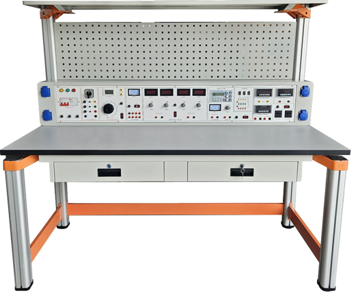 實(shí)驗(yàn)桌一桌兩座,實(shí)驗(yàn)桌桌面配有磁吸式實(shí)訓(xùn)基座,與實(shí)訓(xùn)模塊配套完成實(shí)訓(xùn)。實(shí)驗(yàn)桌后面二支截面尺寸70×70mm桌腳向上延伸,與一次成型鋁壓鑄框架連接構(gòu)件構(gòu)成(非焊接工藝)牢固的支架,與實(shí)訓(xùn)屏、儀器架、電源控制箱組成一個(gè)完整的實(shí)訓(xùn)屏。