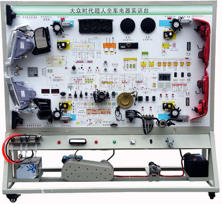 大眾汽車全車電路綜合實訓設(shè)備采用全新桑塔納2000整車電器實物為基礎(chǔ),充分展示汽車發(fā)動機防盜系統(tǒng)、儀表系統(tǒng)、燈光系統(tǒng)、雨刮系統(tǒng)、喇叭系統(tǒng)、點火系統(tǒng)、電動車窗系統(tǒng)、電動門鎖、音響系統(tǒng)、起動系統(tǒng)和充電系統(tǒng)等汽車電器各系統(tǒng)的組成結(jié)構(gòu)和工作過程。