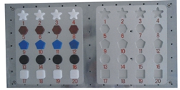 圖塊搬運(yùn)模型:多形狀物料搬運(yùn):機(jī)器人通過(guò)吸盤(pán)夾具依次把一個(gè)物料板擺放好的多種形狀物料(方形、圓形、五邊形、六邊形、五角星)拾取搬運(yùn)到另一個(gè)物料板上;圓形物料搬運(yùn):機(jī)器人通過(guò)吸盤(pán)夾具依次把一個(gè)物料板擺放好的物料拾取搬運(yùn)到另一個(gè)物料板上;物料板可以水平固定到操作臺(tái),也可傾斜一點(diǎn)角度安裝到操作臺(tái);圓形物料有兩種,一種金屬錢幣形物料,一種單面錐形物料;每個(gè)物料板對(duì)應(yīng)工位都蝕刻有物料編號(hào);搬運(yùn)形式可根據(jù)要求靈活組合,形式多樣,能滿足平面、斜面、陣列、指定編號(hào)位置、多種物料混合等要求;強(qiáng)化對(duì)機(jī)器人點(diǎn)位示教技能移訓(xùn)練。