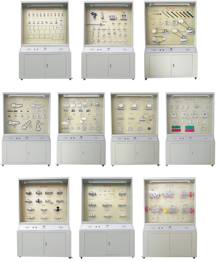 機械零件設計陳列柜本柜是在SBSJ-18型陳列柜基礎上通過精選陳列內容后,設計生產(chǎn)的陳列柜,其優(yōu)點是較大的減少陳列柜的占地面積,特點適用于實驗室面積較緊湊的實驗室陳列。具有多功能語音播放控制系統(tǒng)。語音解說同步演示,采用單獨驅動由電腦或電子設備控制運轉演示,可由遙控控制順序自動運行講解,又能根據(jù)教材、教學需要而遙控任意選擇還是單獨演示。本陳列柜主要展示,聯(lián)接傳動,軸承及其他通用零件的基本類型結構形式和設計應用知識。
