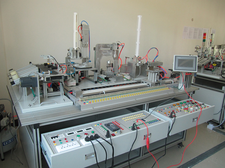 自動化綜合實訓(xùn)裝置由由鋁合金導(dǎo)軌式實訓(xùn)臺、典型的機電一體化設(shè)備的機械部件、PLC模塊、變頻器模塊、按鈕模塊、電源模塊、模擬生產(chǎn)設(shè)備實訓(xùn)模塊、接線端子排和各種傳感器、計算機等組成。整體結(jié)構(gòu)采用開放式和拆裝式,實訓(xùn)裝置用于機械部件組裝,可根據(jù)現(xiàn)有的機械部件組裝生產(chǎn)設(shè)備,也可添加機械部件組裝其他生產(chǎn)設(shè)備,使整個裝置能夠靈活的按教學(xué)或競賽要求組裝具有生產(chǎn)功能的機電一體化設(shè)備。模塊采用標(biāo)準(zhǔn)結(jié)構(gòu)和抽屜式模塊放置架,互換性強;按具有生產(chǎn)性功能和整合學(xué)習(xí)功能的原則確定模塊內(nèi)容,使教學(xué)或競賽時可方便的選擇需要的模塊。設(shè)備需完全符合電工電子全國職業(yè)技能大賽所要求,同時還要求具有可拓展功能,可以組成更加大型的生產(chǎn)模擬系統(tǒng),以配合各個用戶學(xué)校不同層次,不同專業(yè)的教學(xué)及培訓(xùn)要求。