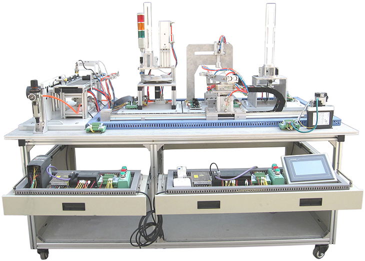光機電氣一體化實訓(xùn)裝置由鋁合金導(dǎo)軌式實訓(xùn)臺、典型的機電一體化設(shè)備的機械部件、PLC模塊、變頻器模塊、按鈕模塊、電源模塊、模擬生產(chǎn)設(shè)備實訓(xùn)模塊、接線端子排和各種傳感器、計算機等組成。整體結(jié)構(gòu)采用開放式和拆裝式,實訓(xùn)裝置用于機械部件組裝,可根據(jù)現(xiàn)有的機械部件組裝生產(chǎn)設(shè)備,也可添加機械部件組裝其他生產(chǎn)設(shè)備,使整個裝置能夠靈活的按教學(xué)或競賽要求組裝具有生產(chǎn)功能的機電一體化設(shè)備。模塊采用標(biāo)準(zhǔn)結(jié)構(gòu)和抽屜式模塊放置架,互換性強;按具有生產(chǎn)性功能和整合學(xué)習(xí)功能的原則確定模塊內(nèi)容,使教學(xué)或競賽時可方便的選擇需要的模塊。設(shè)備需完全符合電工電子全國職業(yè)技能大賽所要求,同時還要求具有可拓展功能,可以組成更加大型的生產(chǎn)模擬系統(tǒng),以配合各個用戶學(xué)校不同層次,不同專業(yè)的教學(xué)及培訓(xùn)要求。