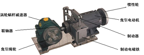 曳引機:含電動機 1只、減速機 1只、抱閘 1套、 聯(lián)軸器 1套、曳引輪 1只、導向輪 1只 |