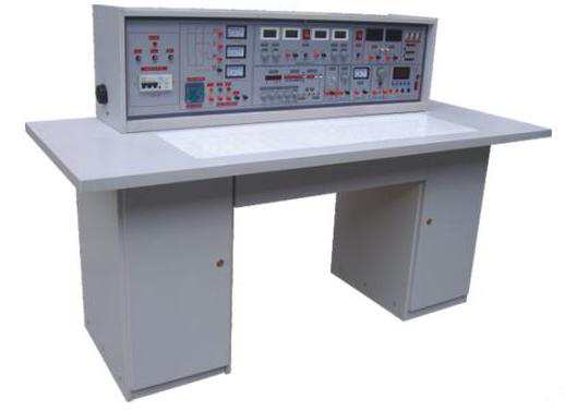 2、實驗操作桌:雙面飾面板制成,不變形不褪色,尺寸:160×70×80cm,造型美觀大方,中間設(shè)有抽屜,存放工具,左右二只存放柜,用于儲存元器件。