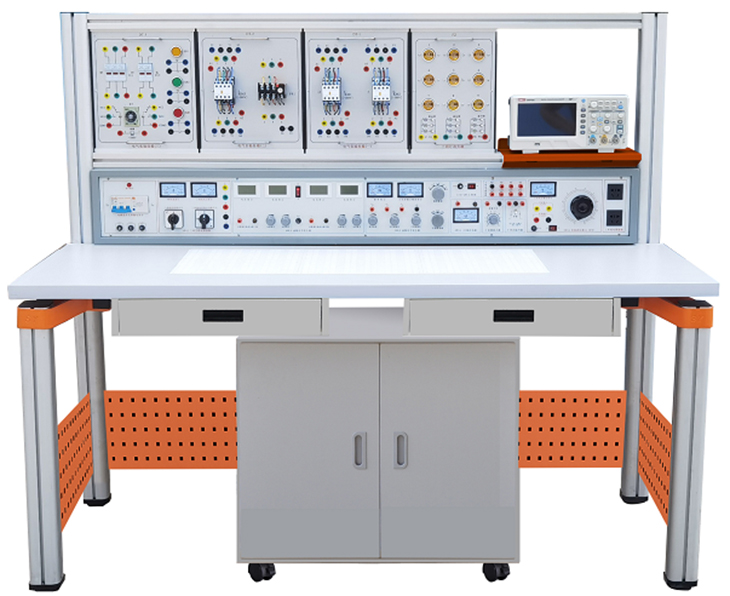 裝置由電源控制箱、實驗桌(裝有九孔萬能插件板)、電氣控制實驗掛箱,實驗掛箱支架、移動矮柜、示波器架、透明創(chuàng)新實驗模塊(盒)、學生凳等組成。實驗裝置支架與實驗桌可組合、可拆裝。支架與桌腳一體,鋁合金結(jié)構(gòu);電氣控制實驗掛箱與各實驗模塊可根據(jù)實驗需求自由組合實驗。