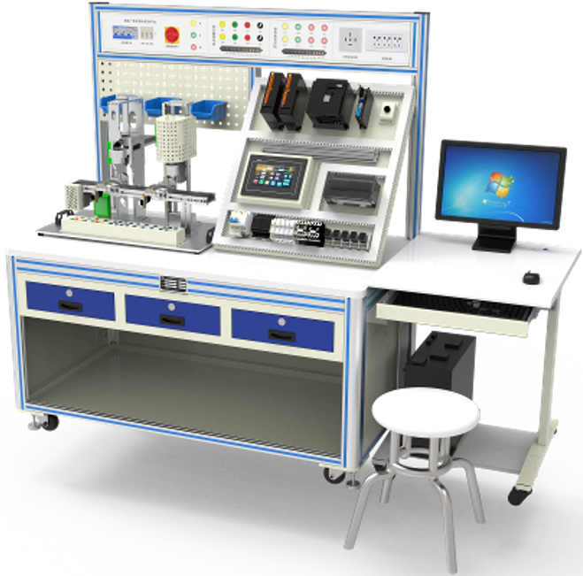 設備涉及PLC應用技術、觸摸屏應用技術、通信應用技術、交流伺服應用技術、交流變頻應用技術、電力電子應用技術、傳感器應用技術、氣動控制技術、機械裝調技術等機電一體化知識性能。