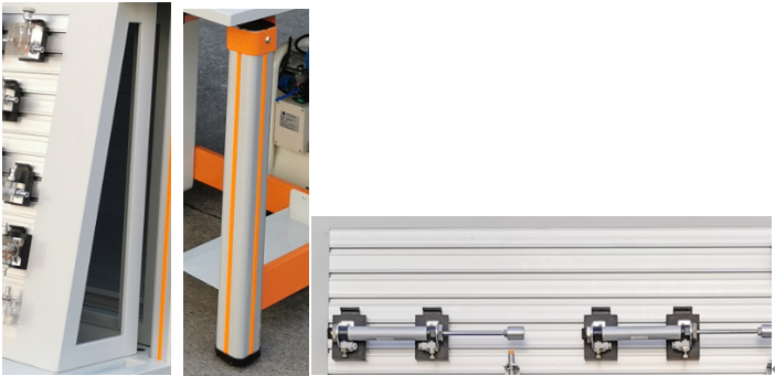 1.實驗臺架:實驗臺架規(guī)格為1600(長)*700(寬)*1760(高),實驗臺架主體結構全部采用高性能表面氧化的鋁型材及一次成型鋁壓鑄框架連接構件,連接構件采用壓鑄成型工藝(非焊接工藝),經(jīng)機加工、拋丸、噴砂、表面靜電噴涂工藝,安裝方便、快捷,用戶可自行DIY組裝。桌體立柱采用工業(yè)鋁型材成型工藝,表面氧化處理,截面尺寸:70×70mm,四面帶槽,槽寬約8mm,端部配套模具成型塑料堵頭。桌面采用25mmE1級三聚氰胺飾面板,桌面板下設支撐框架,承受力不少于200kg。配備儲存柜,存放實訓掛箱等,儲存柜底部4只高強度萬向可制動PU腳輪,方便移動。實驗臺架整體簡約不簡單,高端大氣,符合現(xiàn)代化產(chǎn)品審美和發(fā)展趨勢。