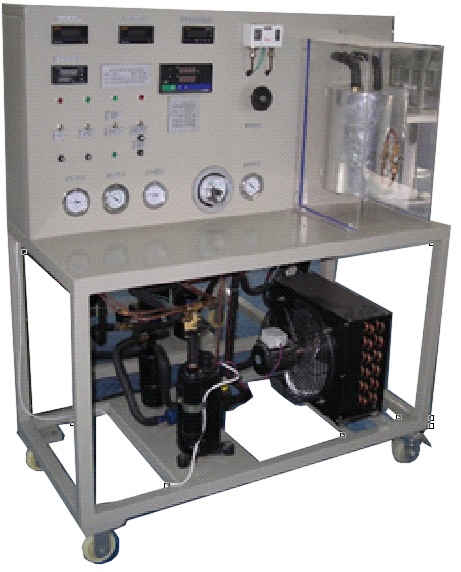 " 壓縮機性能試驗臺(電量熱計法)"采用蒸汽壓縮式制冷循環(huán)系統(tǒng),配備制冷壓縮機、不銹鋼冷凝器、蒸發(fā)器等制冷系統(tǒng)真實部件,并設(shè)有彩色控制屏、制冷劑流量調(diào)節(jié)控制器,電子膨脹閥,渦輪流量計、壓力變送器、電壓、電流、功率、合相有功功率、各相無功功率、合相無功功率、各相視在功率、合相視在功率、采集器。不但能開設(shè)制冷壓縮機性能參數(shù)的測定實訓,還能進行制冷循環(huán)基本原理的演示實訓。適用于職業(yè)院校制冷專業(yè)相關(guān)課程的教學實訓。