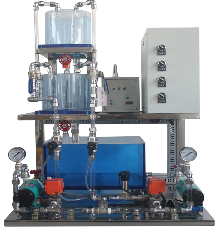 2個圓型有機玻璃水箱,直徑20cm, 實驗水箱設計要求:水箱結構獨特,由三個槽組成,分別為緩沖槽、工作槽和出水槽,進水時水管的水先流入緩沖槽,出水時工作槽的水經過帶燕尾槽的隔板流入出水槽,這樣經過緩沖和線性化的處理,工作槽的液位較為穩(wěn)定,便于觀察。水箱底部均接有擴散硅壓力傳感器與變送器,可對水箱的壓力和液位進行檢測和變送。 |