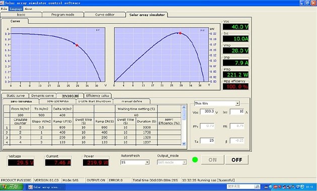 Ø 輸出電壓、電流、功率的數(shù)據(jù)顯示及動(dòng)態(tài)曲線顯示