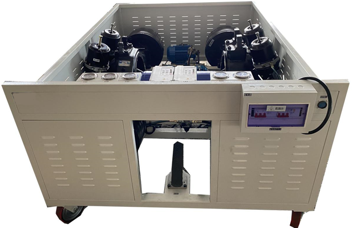 7.設備面板柜:1.5mm冷板沖壓成形,背面設置維修門;底座采用鋼結構焊接,表面采用噴涂工藝處理,帶自鎖腳輪裝置,移動靈活,安全可靠、堅固耐用。