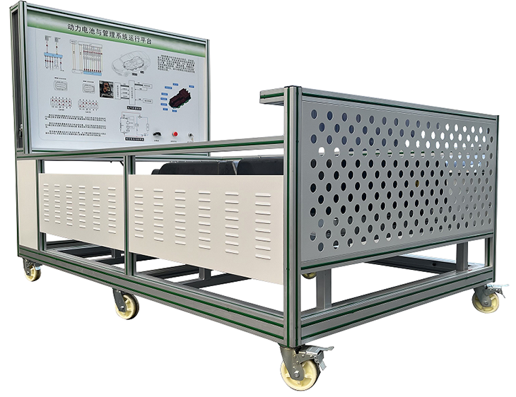 鋰動力電池組、電池管理系統(tǒng)BMS、維修開關(guān)、輔助蓄電池(12V45AH)、高壓配電箱、漏電傳感器、車載充電機(jī)、國標(biāo)充電插座與充電槍、直流接觸器(包含充電繼電器、總正繼電器、總負(fù)繼電器、預(yù)充繼電器)、急停開關(guān)與電源總開關(guān)、一體化全鋁合金型材搭建的移動臺架(≥1500×700×1700mm