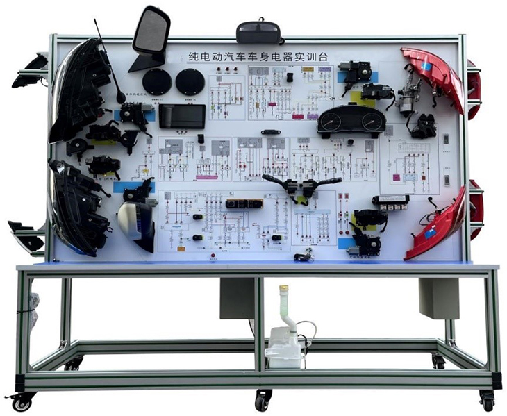 純電動汽車車身電器實訓臺\該設(shè)備采用(高速)純電動汽車車身電器系統(tǒng)實物為基礎(chǔ),充分展示純電動汽車儀表系統(tǒng)、燈光系統(tǒng)、雨刮系統(tǒng)、喇叭系統(tǒng)、低壓電源電器系統(tǒng)、電動車窗系統(tǒng)、電動門鎖、音響系統(tǒng)等低壓電器系統(tǒng)的組成結(jié)構(gòu)和工作過程。適合于各類院校對純電動車車身電器系統(tǒng)理論和維修實訓的拆裝與維護、結(jié)構(gòu)與原理認知、系統(tǒng)操作、功能動態(tài)演示、故障檢測與診斷教學需要。