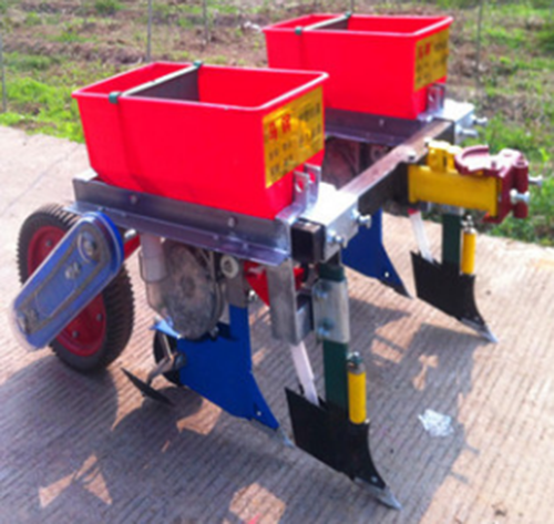 播種機(jī)與手扶拖拉機(jī)牽引座連為一體,隨手把能靈活升降,具有結(jié)構(gòu)簡單,造價低廉,操作方便等優(yōu)點,是配套手扶拖拉機(jī)的一種小型播種機(jī)。