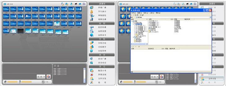 ⑥具有分屏廣播、文件分發(fā)、作業(yè)提交、網(wǎng)絡(luò)考場、遠程輔導(dǎo)、遠程監(jiān)控、網(wǎng)絡(luò)影院、語音廣播、語音對話、錄制與回放功能。