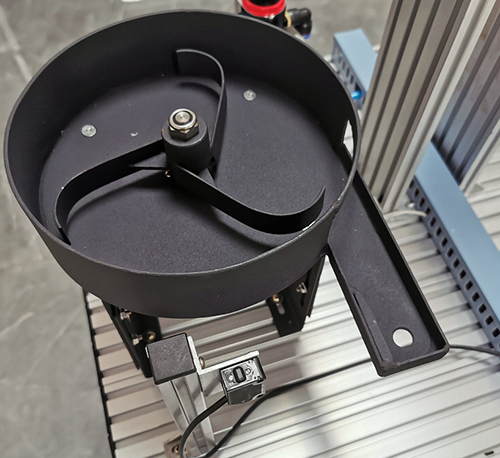 放料轉(zhuǎn)盤:轉(zhuǎn)盤中共放三種物料,一種金屬物料、一種黑色塑料物料、一種白色塑料物料。