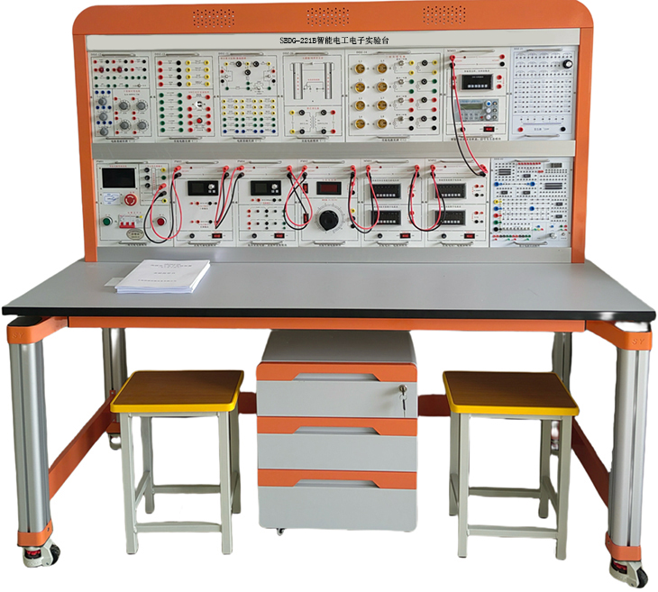 四、智能電工電子實驗臺主要配置及功能:實驗平臺由實驗桌、實驗臺架、存儲柜、實驗掛箱組件、配件等組成。