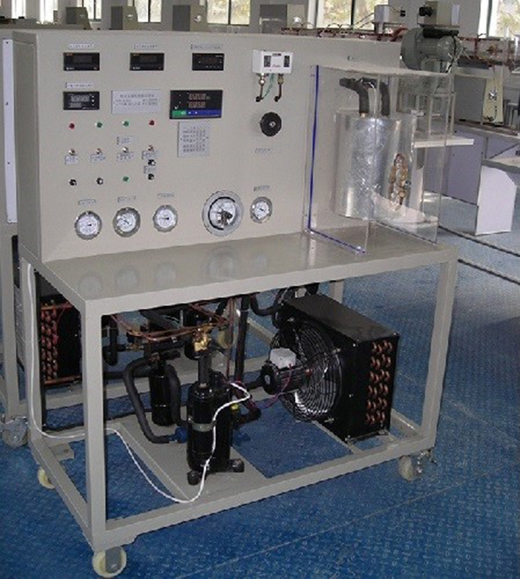 壓縮機性能試驗臺(電量熱計法)"采用蒸汽壓縮式制冷循環(huán)系統(tǒng),配備制冷壓縮機、不銹鋼冷凝器、蒸發(fā)器等制冷系統(tǒng)真實部件,并設有彩色控制屏、制冷劑流量調(diào)節(jié)控制器,電子膨脹閥,渦輪流量計、壓力變送器、電壓、電流、功率、合相有功功率、各相無功功率、合相無功功率、各相視在功率、合相視在功率、采集器。不但能開設制冷壓縮機性能參數(shù)的測定實訓,還能進行制冷循環(huán)基本原理的演示實訓。適用于職業(yè)院校制冷專業(yè)相關(guān)課程的教學實訓。