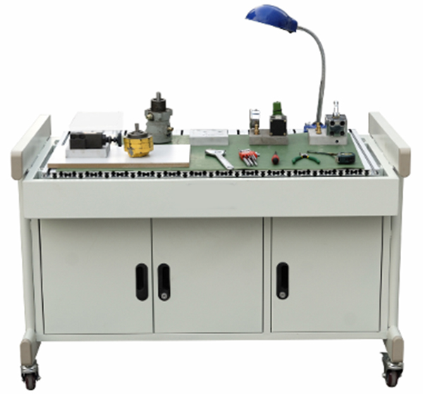 6、實(shí)訓(xùn)臺(tái):采用鈑金結(jié)構(gòu)設(shè)計(jì),表面為雙層亞光密紋噴塑工藝處理,臺(tái)面采用下凹設(shè)計(jì),增加臺(tái)虎鉗,以及絕緣防滑墊,同時(shí)為液壓閥拆裝時(shí)提供一個(gè)良好的接油、防震平臺(tái)。