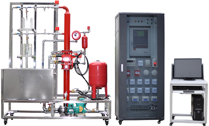 管道工實訓(xùn)設(shè)備(含排水及消防工訓(xùn)設(shè)備)依據(jù)《自動噴水滅火系統(tǒng)設(shè)計規(guī)范》相關(guān)標(biāo)準(zhǔn)設(shè)計,該系統(tǒng)具有噴水滅火系統(tǒng)典型結(jié)構(gòu),能夠完成火災(zāi)探測,火災(zāi)報警,現(xiàn)場滅火、消防聯(lián)動報警主機的控制及設(shè)置等演示性實訓(xùn)項目,同時還能清楚的展示噴淋滅火系統(tǒng)的典型設(shè)備構(gòu)成和系統(tǒng)工作原理,通過該裝置的操作學(xué)習(xí),學(xué)生可以對樓宇中噴水滅火系統(tǒng)的結(jié)構(gòu)有一個全面的了解,掌握建筑物內(nèi)部主要滅火設(shè)備的應(yīng)用,熟悉樓宇中濕式報警閥、各類探測器、智能型輸入輸出模塊、火災(zāi)顯示盤、水流指示器、壓力開關(guān)等設(shè)備的結(jié)構(gòu)和原理,熟悉滅火系統(tǒng)的控制原理和工作過程。