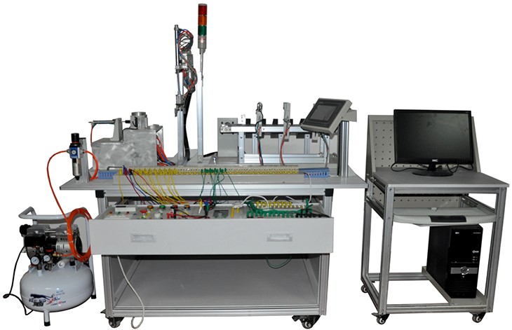實(shí)訓(xùn)裝置由由鋁合金導(dǎo)軌式實(shí)訓(xùn)臺(tái)、典型的機(jī)電一體化設(shè)備的機(jī)械部件、PLC模塊、變頻器模塊、按鈕模塊、電源模塊、模擬生產(chǎn)設(shè)備實(shí)訓(xùn)模塊、接線端子排和各種傳感器、計(jì)算機(jī)等組成。整體結(jié)構(gòu)采用開放式和拆裝式,實(shí)訓(xùn)裝置用于機(jī)械部件組裝,可根據(jù)現(xiàn)有的機(jī)械部件組裝生產(chǎn)設(shè)備,也可添加機(jī)械部件組裝其他生產(chǎn)設(shè)備,使整個(gè)裝置能夠靈活的按教學(xué)或競(jìng)賽要求組裝具有生產(chǎn)功能的機(jī)電一體化設(shè)備。模塊采用標(biāo)準(zhǔn)結(jié)構(gòu)和抽屜式模塊放置架,互換性強(qiáng);同時(shí)還要求具有可拓展功能,可以組成更加大型的生產(chǎn)模擬系統(tǒng),以配合各個(gè)用戶學(xué)校不同層次,不同專業(yè)的教學(xué)及培訓(xùn)要求。