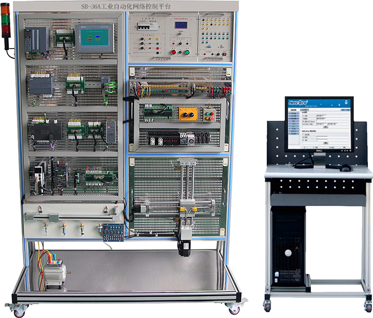 工業(yè)自動化網(wǎng)絡控制實訓平臺,工業(yè)控制網(wǎng)絡是近年來發(fā)展形成的自動控制領域的網(wǎng)絡技術,是計算機技術、通信技術與自動控制技術相結合的產(chǎn)物,其主要包括現(xiàn)場總線技術和工業(yè)以太網(wǎng)技術。為了使院校自動化專業(yè)的學生能夠加深對工業(yè)控制網(wǎng)絡的理解,直接接觸和操作先進的工業(yè)控制設備,熟悉工業(yè)現(xiàn)場總線的原理和運行機制,使之走上工作崗位后能立即參與解決工程實際問題,我們研制了一套工業(yè)控制網(wǎng)絡綜合實驗系統(tǒng)。該實驗系統(tǒng)模擬工業(yè)現(xiàn)場實際情況,通過PROFIBUS總線和工業(yè)以太網(wǎng),建立主從站通信系統(tǒng),實現(xiàn)各類傳感器的實時數(shù)據(jù)采集和遠程監(jiān)控。同時,該實驗平臺還可以為現(xiàn)場總線技術、工業(yè)自動化與控制網(wǎng)絡、集散控制系統(tǒng)、工業(yè)自動化系統(tǒng)課程設計、過程控制等專業(yè)課程服務。