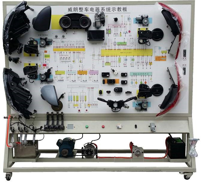 接通電源,操縱示教板上的各種電器開關(guān)、按鈕、真實演示汽車發(fā)動機電控系統(tǒng)、儀表系統(tǒng)、燈光系統(tǒng)、雨刮系統(tǒng)、喇叭系統(tǒng)、點火系統(tǒng)、電動車窗系統(tǒng)、電動門鎖、音響系統(tǒng)、起動系統(tǒng)和充電系統(tǒng)等汽車電器各系統(tǒng)的工作過程。