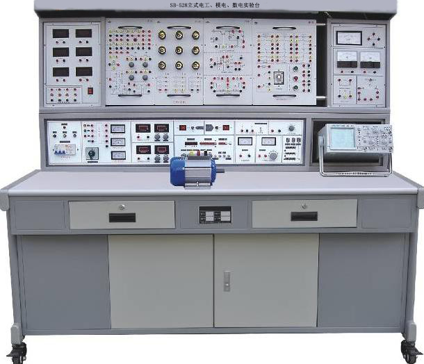 電工、模電、數(shù)電實驗臺適用于高等院校及要求較高的中專、技校、職業(yè)學校,可完成電工學、電工原理、電路分析、模擬電子技術、數(shù)字電路、電氣控制設備等課程實驗。該設備是現(xiàn)有實驗室設備的更新?lián)Q代或新建、擴建實驗室的理想產(chǎn)品,它的配備是學校上水平、上等級的重要標志。實驗臺具有較完善的安全保護措施,較齊全的功能。電工、電氣控制實驗器件采用適應性強的模塊式掛箱;在實驗屏上完成實驗,實驗方法靈活,動手能力強,實驗連線接點接觸可靠,符合不同深度,不同廣度的教學要求。數(shù)電、模電在九孔通用電路板掛箱上完成,根據(jù)實驗復雜程度選取掛箱個數(shù),根據(jù)實驗電路在通用電路板上拼插實驗電路,實驗元件制成透明盒體,直觀性好,盒蓋印有永不褪色元件符號,線條清晰美觀。盒體與盒蓋結合采用較科學的壓卡式結構,維修、更換元件拆裝方便。該實驗臺結構合理,學?呻S時按需要增添新的模塊掛箱,靈活、經(jīng)濟。