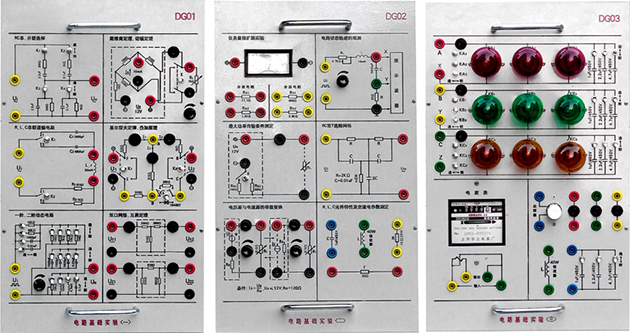 實驗掛箱面板正面印有原理圖及符號,反面焊有相應(yīng)元器件,需要測量及觀察的部分裝有鎖緊式接插件,使用方便、直觀、可靠,實驗電路采用單元電路方式設(shè)計,每個單元電路以基本電路為主,再連接不同的元件為該電路參數(shù)或通過不同的單元電路組合,完成不同的實驗要求。