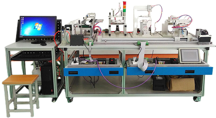 一體化自動(dòng)生產(chǎn)線系統(tǒng)實(shí)訓(xùn)裝置綜合應(yīng)用了多種技術(shù)知識(shí),有氣動(dòng)控制技術(shù)、機(jī)械技術(shù)、傳感器技術(shù)、PLC控制技術(shù)、步進(jìn)電動(dòng)機(jī)位置控制和變頻技術(shù)等,模擬一個(gè)與實(shí)際生產(chǎn)情況十分接近的控制過(guò)程,可以提高學(xué)生的綜合技能。
