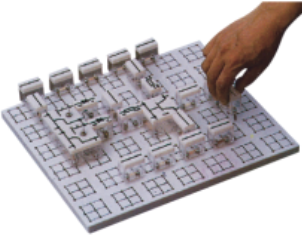 實訓桌一桌兩座,實訓桌中央配有通用九孔萬能插件板(尺寸:35cm×90cm ),九孔萬能插件板主體由ABS注塑而成,表面布有九孔成一組相互聯(lián)通的插孔,九孔萬能插件板內(nèi)部內(nèi)嵌126組銅質(zhì)九孔一體成型嵌件(共有1134孔)。實訓中的弱電模塊必須以獨立封裝的透明元件盒為單一模塊,元件盒統(tǒng)一都能配合九孔萬能插件板像搭積木一樣的形式自由搭建組合電路;元件盒盒體透明,內(nèi)裝元件直觀性好,盒蓋印刷電路圖防刮耐磨,符號美觀清晰。元件盒盒體與盒蓋采用較科學的壓卡式結(jié)構(gòu),維修拆裝方便。每張臺桌配有一粒膠皮板,保護通用底板與桌面(如需在桌上放置電動機、焊接等)。