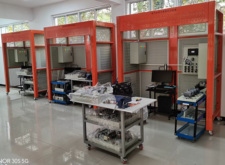 電氣安裝與維修實(shí)訓(xùn)考核裝置,可進(jìn)行電工安裝。如橋架安裝、PVC管安裝、白熾燈座、日光燈、開(kāi)關(guān)、插座、配電箱、控制箱等,裝置還包含有交流異步電動(dòng)機(jī)、直流電動(dòng)機(jī)、步進(jìn)電機(jī)、伺服電機(jī)、溫度控制器、電偶、PLC、變頻器觸摸屏等控制與受控對(duì)象。該系統(tǒng)每個(gè)操作組配套一可移動(dòng)式工具車(chē)和元件柜,便于對(duì)元件的保管和安裝施工。從根本上解決了學(xué)校在普通墻面上進(jìn)行的安裝培訓(xùn)的使用不方便、實(shí)訓(xùn)范圍窄的問(wèn)題。